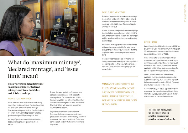 MINTAGE FIGURES REFER TO THE MAXIMUM AMOUNT OF A COIN WE COULD PRODUCE. ISSUE LIMITS REFER TO THE FORMATS IN WHICH THE COIN IS PACKAGED.
