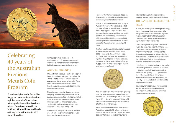 From its origins as the Australian Nugget to its transformation into a global symbol of Australian identity, the Australian Precious Metals Coin Program reflects both artistic excellence and holds a strong reputation as a trusted store of wealth.