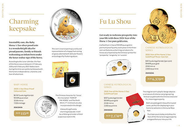 Get ready to welcome prosperity into your life with these 2026 Year of the Horse 1 / 5oz pure gold coins.