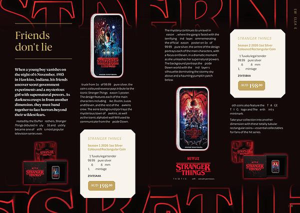 Both coins also feature the ' STRANGER THINGS ' logo and The Perth Mint ' s ' P ' mintmark.