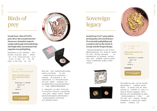 Struck from 1 kilo of 99.99 % pure silver, this exceptional coin showcases Australia’ s majestic wedge-tailed eagle in breathtaking ultra high relief, accentuated with exquisite rose gold gilding.