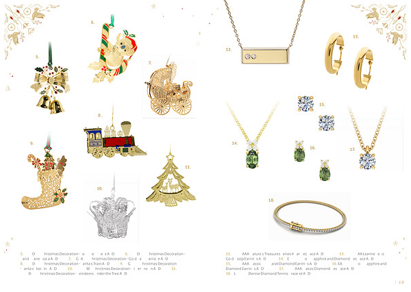 12. 25V56AAA Nature ' s Treasures Series II Bar Necklace AUD 8,500.00 13. 24V24CAA Leanne Yellow Gold Hoop Earrings AUD 395.00 14. NE250301 Holly Sapphire and Diamond Necklace AUD 2,750.00 15. 25V32AAA Classic 0.20 Carat Diamond Earrings AUD 1,665.00 16. EA250601 Holly Sapphire and Diamond Earrings AUD 1,950.00 17. 25V31AAA Classic Diamond Necklace AUD 4,995.00 18. BL281015 Denise Diamond Tennis Bracelet AUD 8,100.00