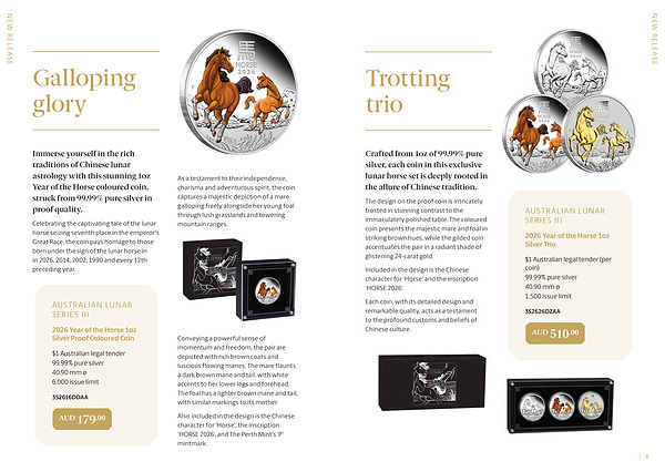 Also included in the design is the Chinese character for‘ Horse’, the inscription‘ HORSE 2026’, and The Perth Mint’ s‘ P’ mintmark.