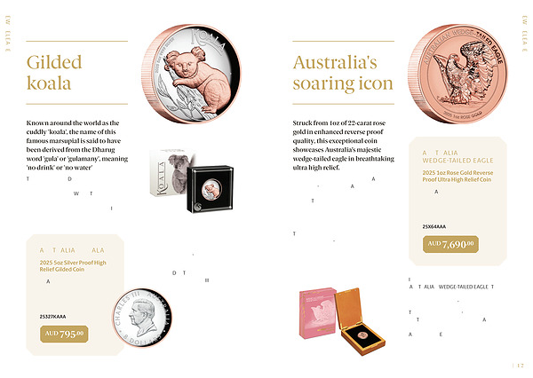 Struck from 1oz of 22-carat rose gold in enhanced reverse proof quality, this exceptional coin showcases Australia’ s majestic wedge-tailed eagle in breathtaking ultra high relief.