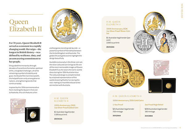 Available exclusively in the three-coin set, the silver coloured coin brings to life one of the most memorable images of Queen Elizabeth II as she wears the iconic wattle dress during her 1954 Australian tour. The coloured design is complemented by a stylised representation of the wattle brooch gifted to her during the visit, making it a heartfelt tribute to her connection with Australia.